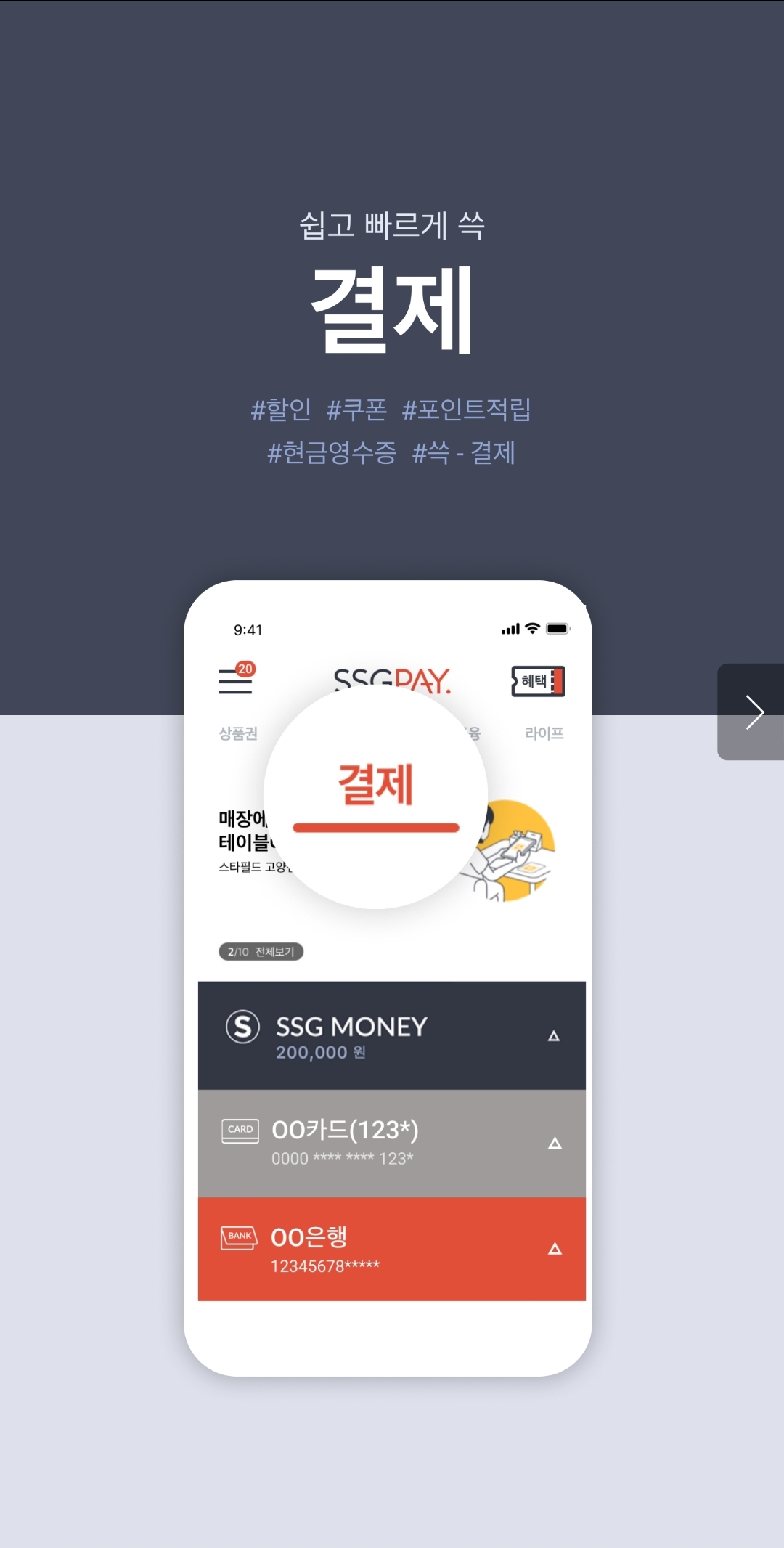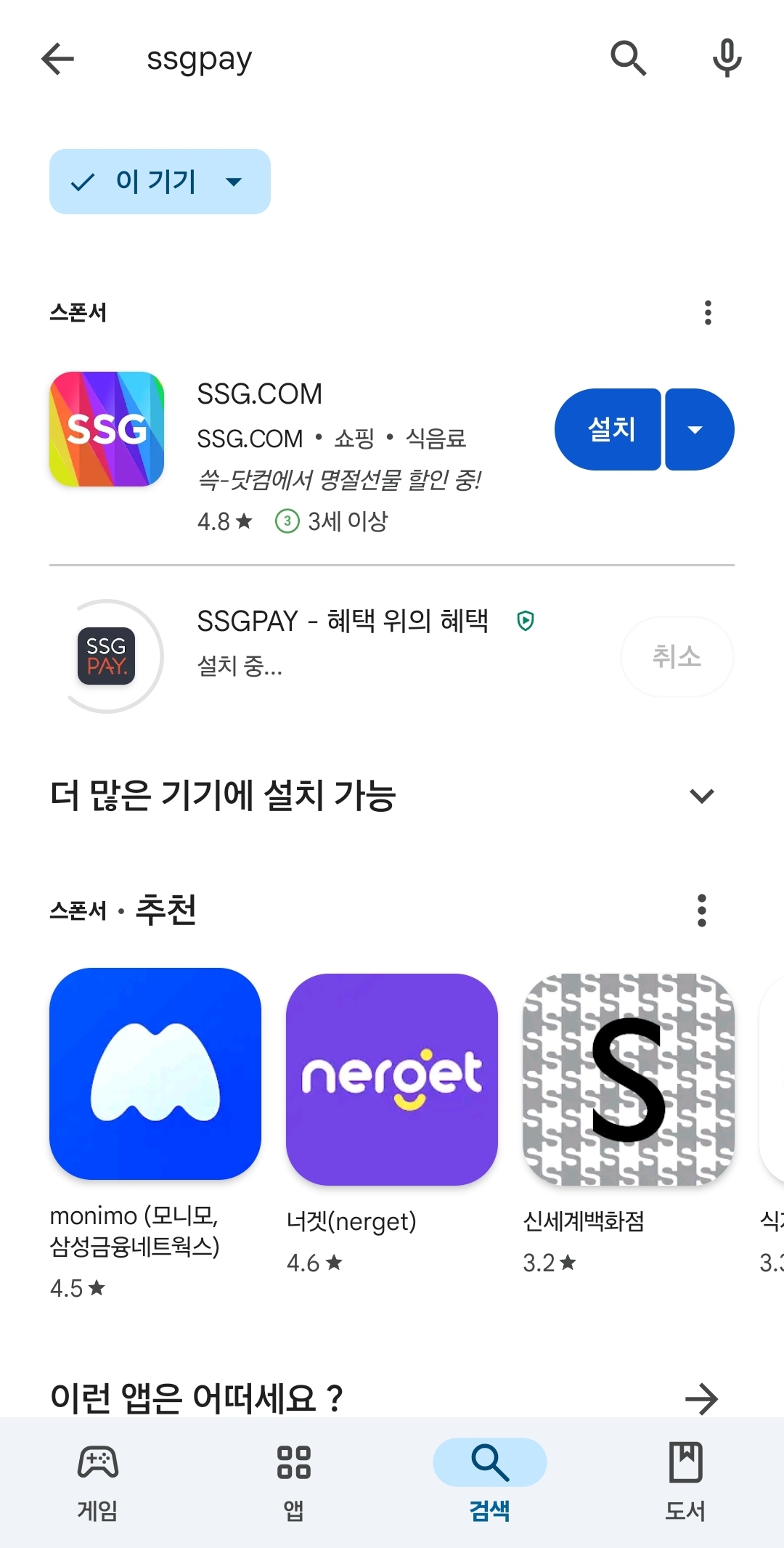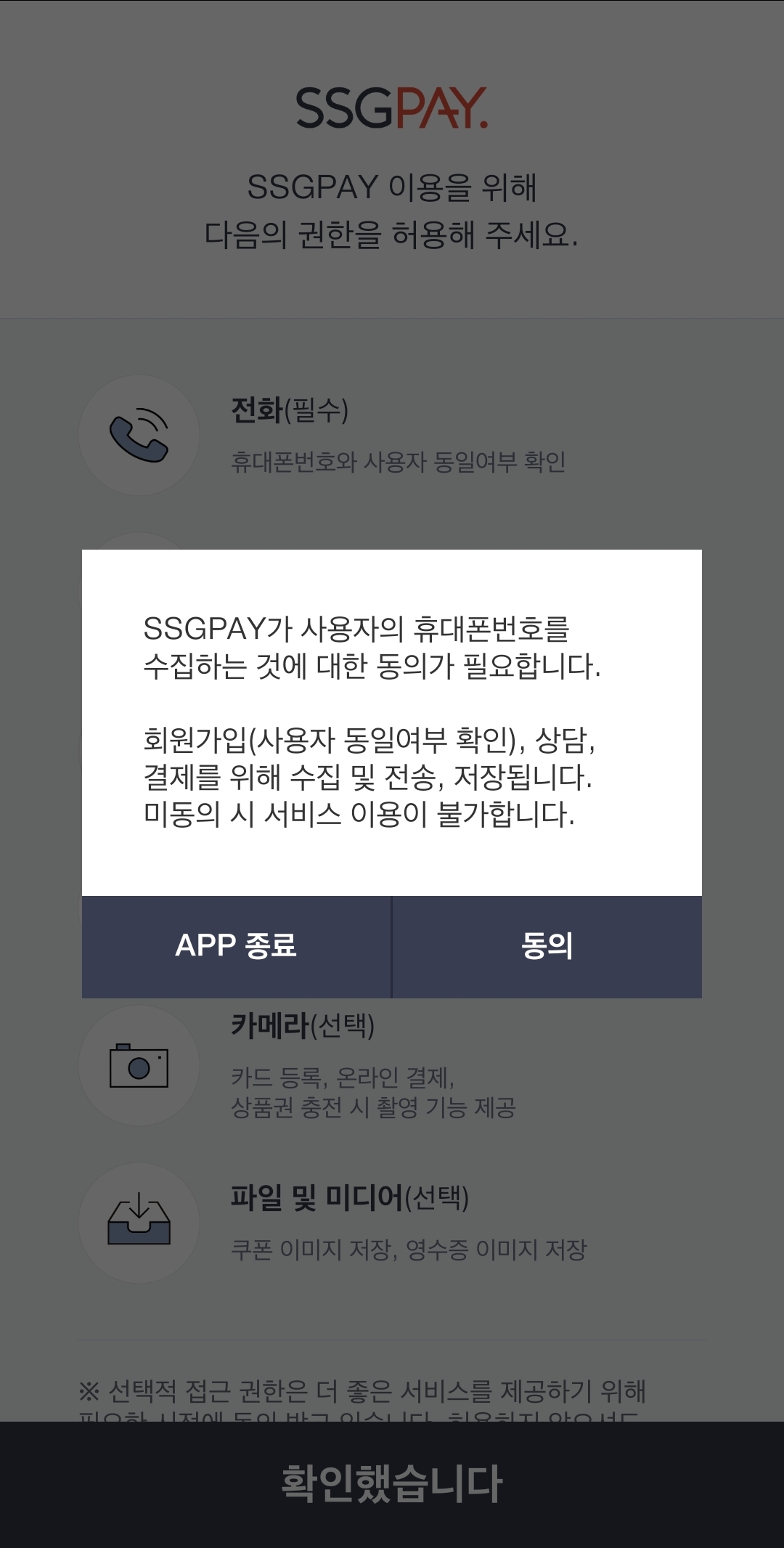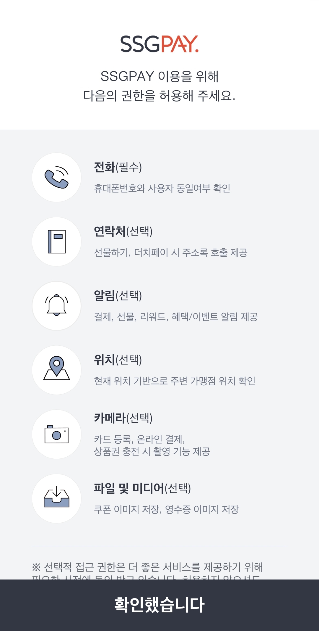 앱스토어 또는 구글플레이에서 'SSGPay' 앱을 다운로드하여 설치합니다.